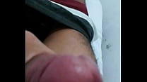 Novinho acariciando a rola meia bomba até ela ficar dura 2 min